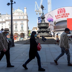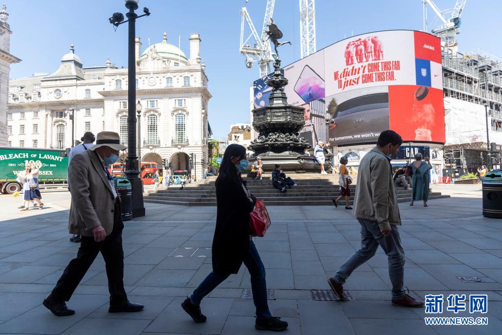 7月16日,人们戴着口罩走在英国伦敦街头。新华社发(雷伊·唐摄)