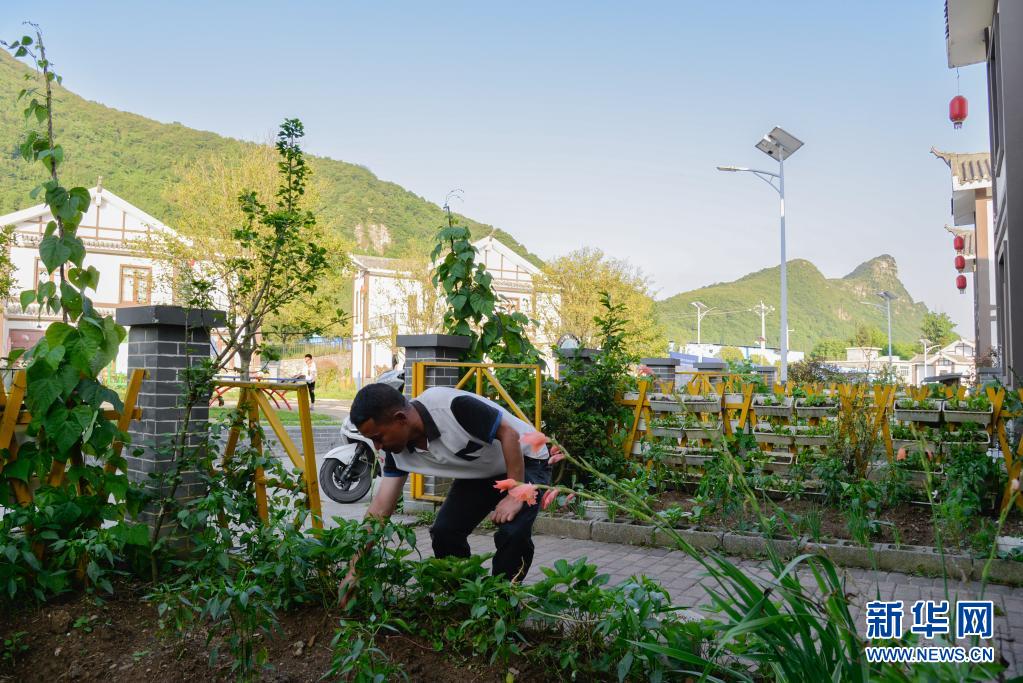 新华社贵阳7月17日电 季夏时节,乌蒙山麓,郁郁葱葱。皮肤被晒得黝黑的周小军,正在自家二层“洋楼”前的小花园里,忙着拾掇花花草草。从车祸到痊愈,从住“穷窝”到进“洋楼”,从贫困户到村干部,说起自己的人生经历,周小军称之为重生。
