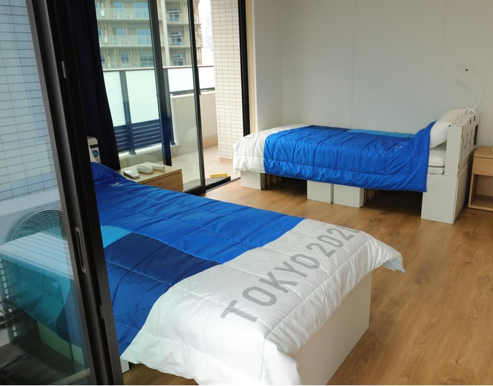 这是6月20日在东京奥运会奥运村拍摄的双人间。新华社记者王子江摄