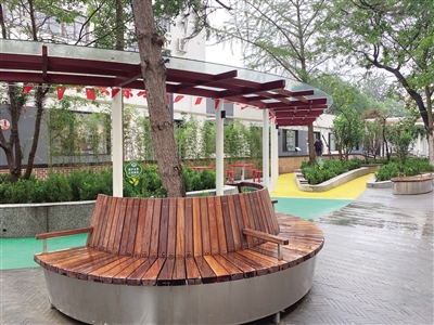 今年72岁的该小区居民张淑英告诉记者,在改造之前,“楼门前根本就没什么公共的区域,小区老人也没什么歇脚的地方。”