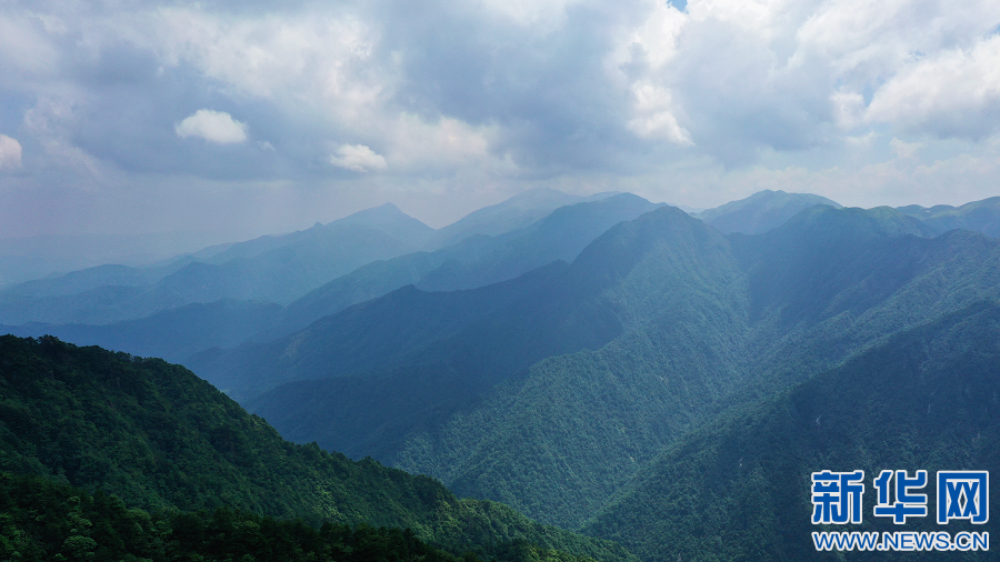 俯瞰羊狮慕景区,群峰叠嶂,苍翠秀丽。新华网 王晓震 摄