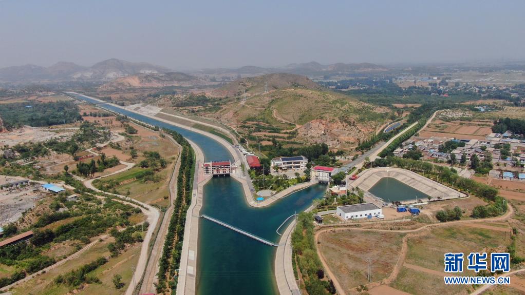 这是南水北调中线西黑山枢纽——南水从这里一分为二流往北京和天津(5月25日摄,无人机照片)。新华社记者 刘诗平 摄