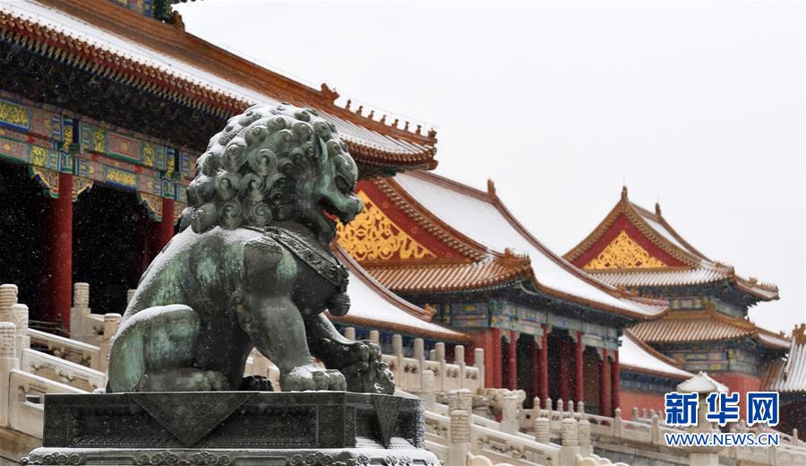 纯白的雪与朱红的瓦交相辉映,宛如画卷(资料图)。新华社记者 陈建力 摄