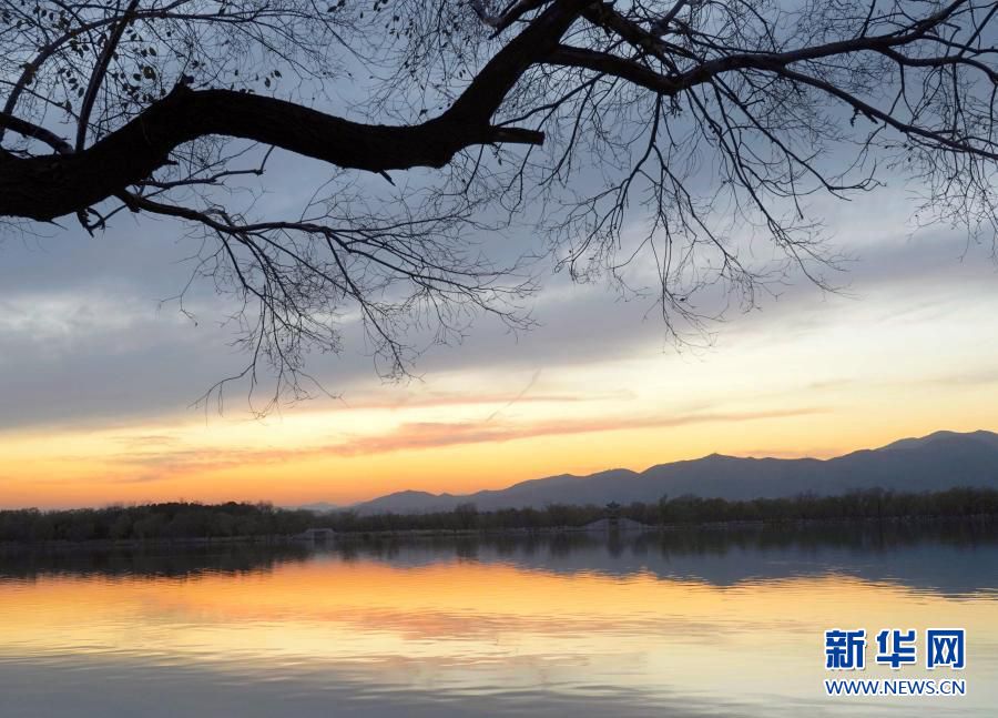 落日时分的颐和园西堤,余晖笼罩之下,高低起伏的山脉仿佛披上了金色的薄纱(资料图)。新华社记者 陈建力 摄