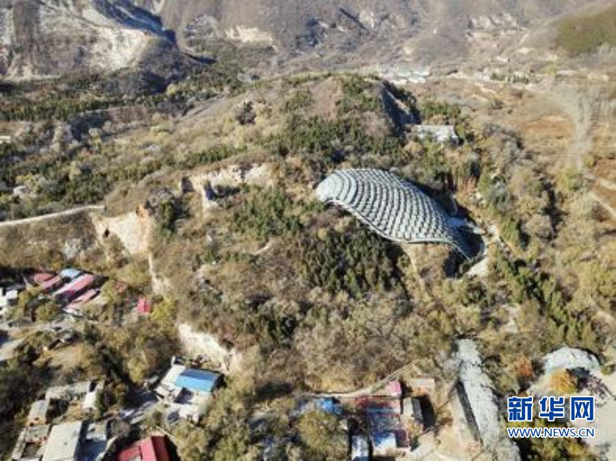 2018年9月,猿人洞重新向公众开放,保护棚科技感十足(无人机航拍,2018年11月16日摄)。新华社记者 罗晓光 摄