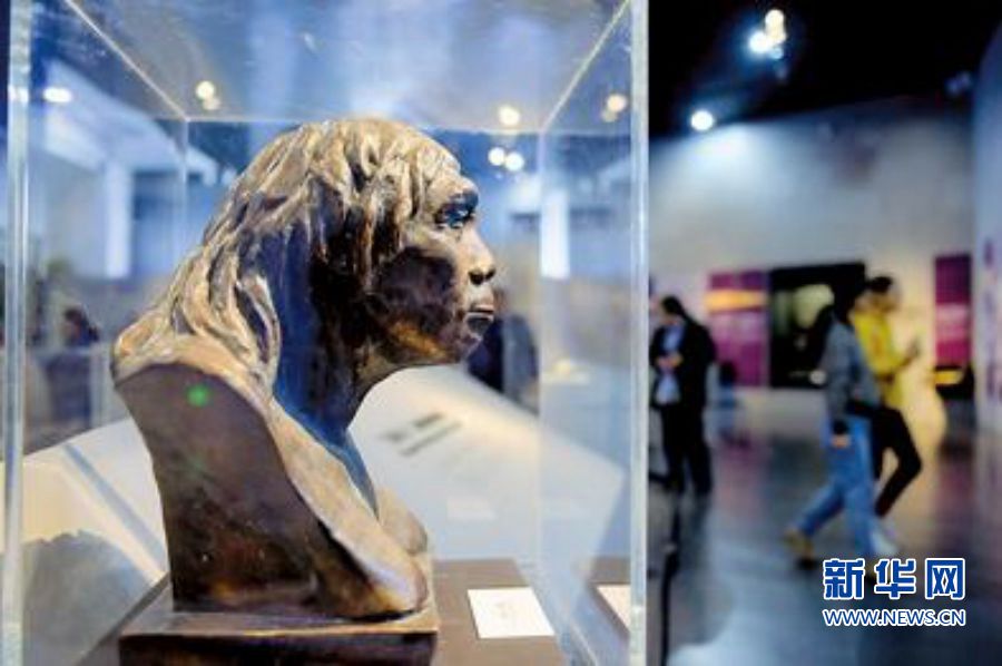 周口店北京人遗址博物馆展出的“北京人”复原像(2018年11月16日摄)。新华社记者 罗晓光 摄
