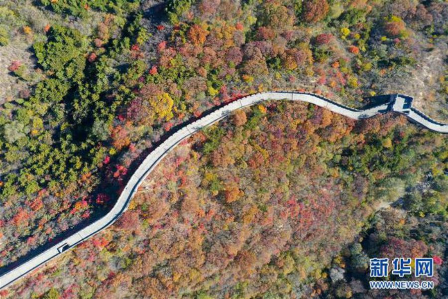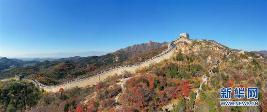 深秋时节,北京八达岭长城红叶进入最佳观赏期,红叶映长城美如画卷(资料图)。 新华社记者 陈晔华 摄