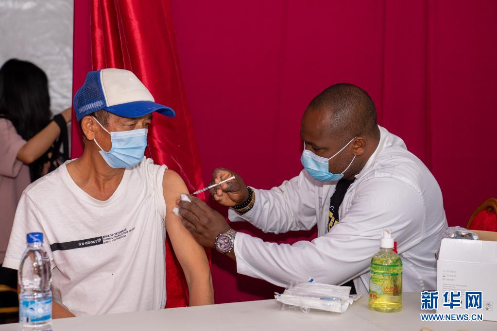 7月19日,中国公民在科特迪瓦阿比让的“春苗行动”接种点接种新冠疫苗。新华社记者 郑扬子 摄