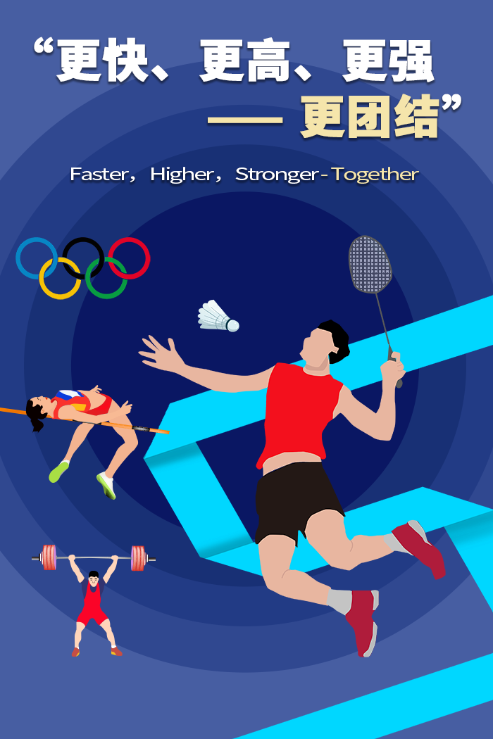 四个词在一起的呈现形式是“更快、更高、更强——更团结”。