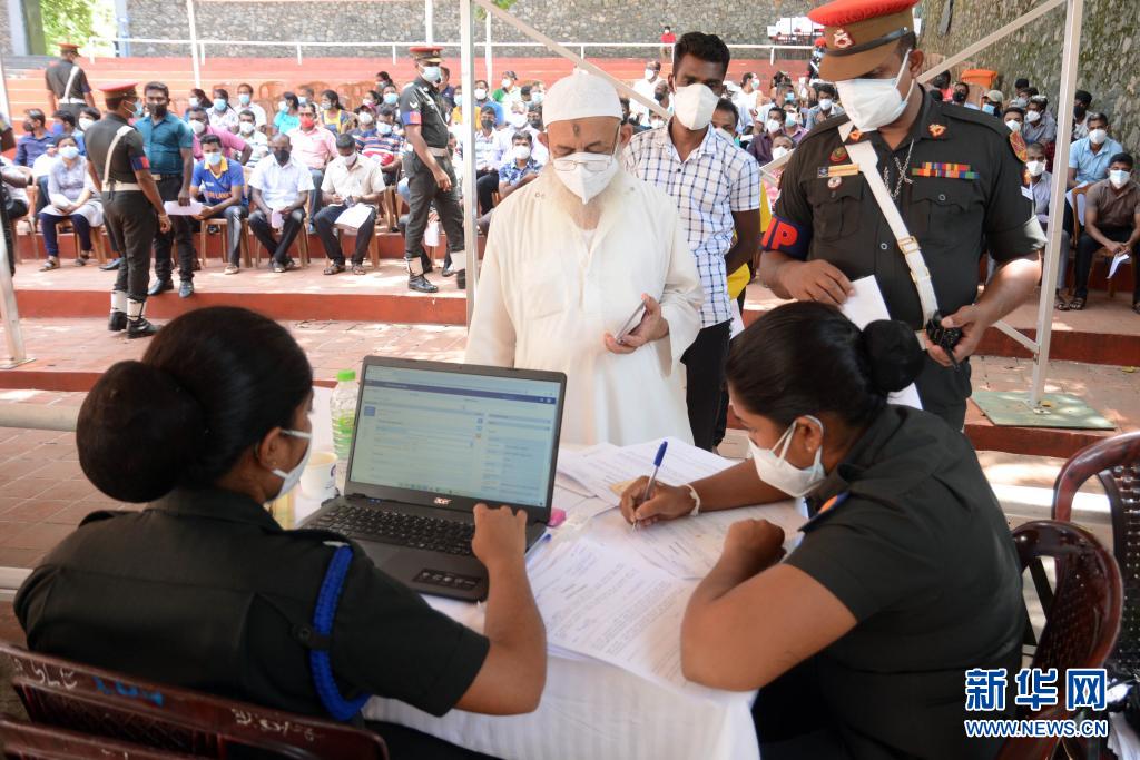 7月20日,在斯里兰卡科伦坡,人们在登记准备接种第一剂国药疫苗。新华社发(加扬·萨米拉摄)