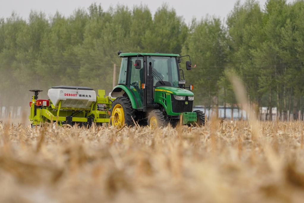 2020年5月7日,梨树县农民驾驶免耕播种机进行保护性耕作。新华社记者张楠 摄