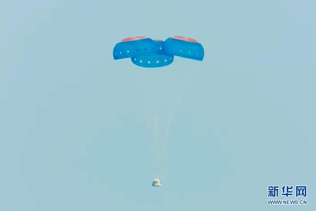 这张美国蓝色起源公司7月20日发布的视频截图显示“新谢泼德”飞行器在美国得克萨斯州西部降落。