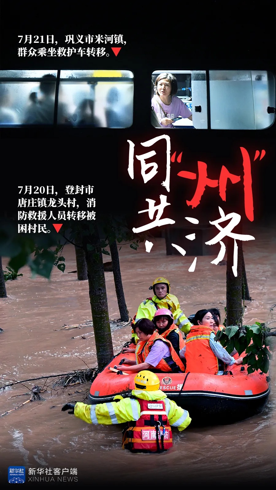 新华社郑州7月21日电 题:风雨揪心 救援同心——新华社记者多路直击河南强降水