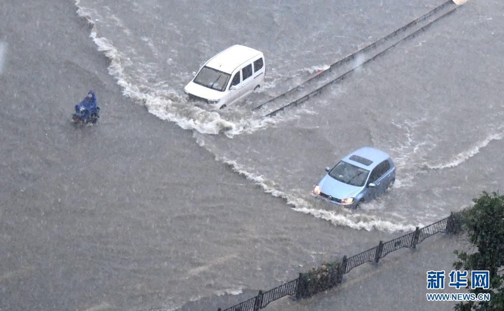 7月20日,记者从河南省郑州市防汛抗旱指挥部获悉,郑州市受强降雨影响,单日降雨量突破历史极值(建站以来),单小时降雨量超过日历史极值。降雨造成郑州市区严重内涝,市内交通中断,多处小区停水停电。 新华社记者 朱祥 摄
