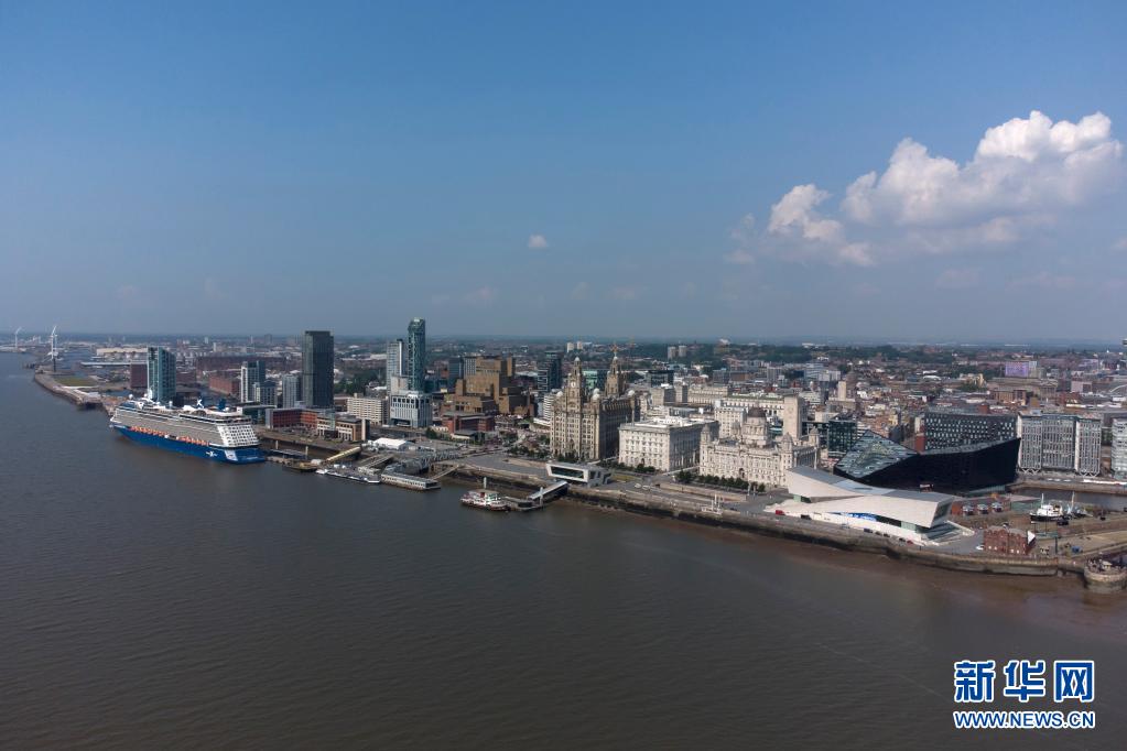 这是7月21日在英国利物浦拍摄的利物浦海上商城码头顶区域(无人机照片)。新华社发(乔恩·休珀摄)