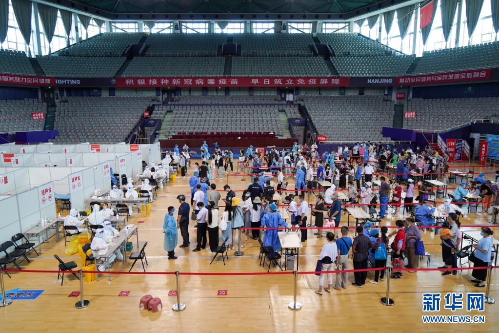 7月22日,市民在南京市鼓楼区五台山体育中心体育馆内进行核酸检测取样。新华社记者 李博 摄