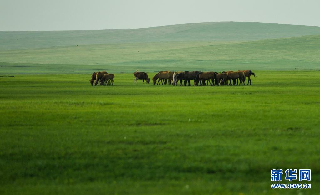 夏日,内蒙古呼伦贝尔陈巴尔虎草原绿草如茵,别具风情。
