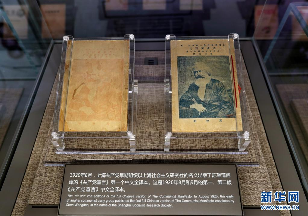 中共一大纪念馆展出的由陈望道翻译的《共产党宣言》第一个中文全译本(6月1日摄)。新华社记者 刘颖 摄