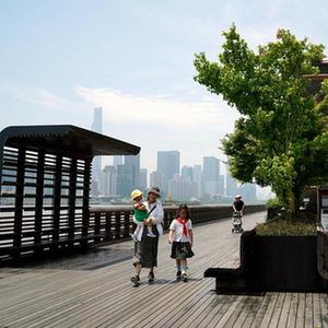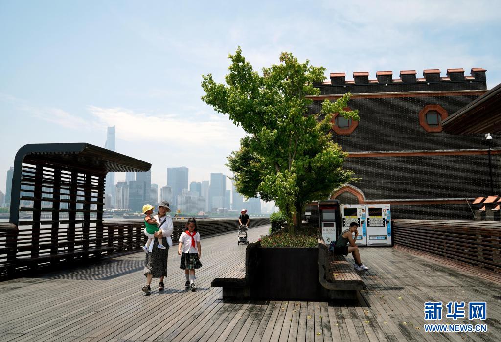 人们在上海杨浦滨江漫步(5月15日摄)。新华社记者 刘颖 摄