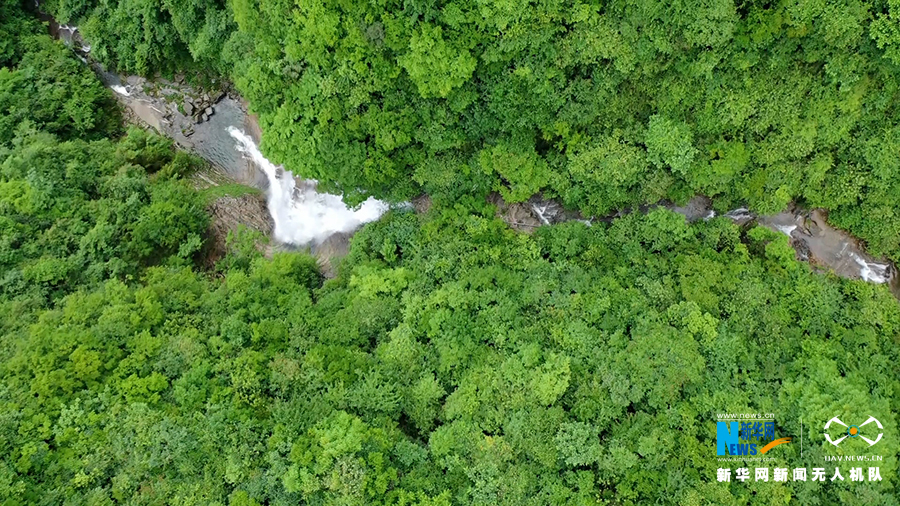 航拍重庆市奉节县龙桥河景区内绿树掩映下的清澈溪流。新华网发(余翔 摄)