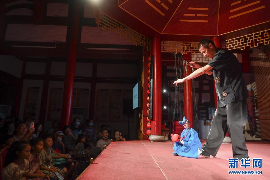 7月6日,游客在福建省泉州市木偶剧团观看木偶戏。新华社记者 宋为伟 摄
