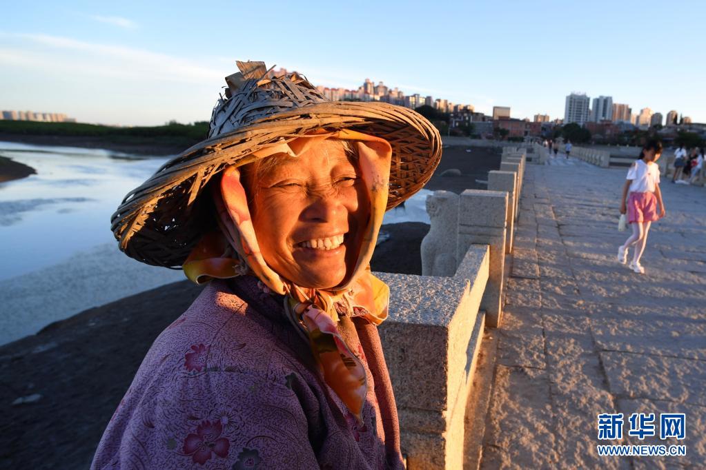 7月7日,福建泉州千年古桥洛阳桥上,夕阳洒在渔民脸上。新华社记者 姜克红 摄
