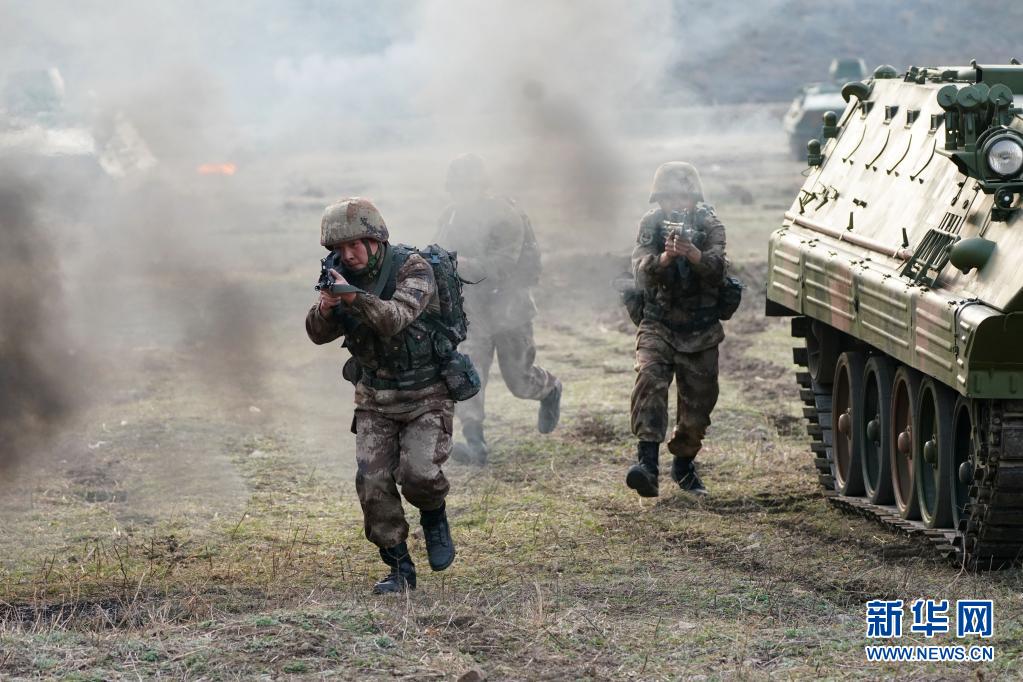 对抗演练中,陆军第83集团军某旅“红一连”官兵下车战斗(3月3日摄)。新华社记者 张永进 摄