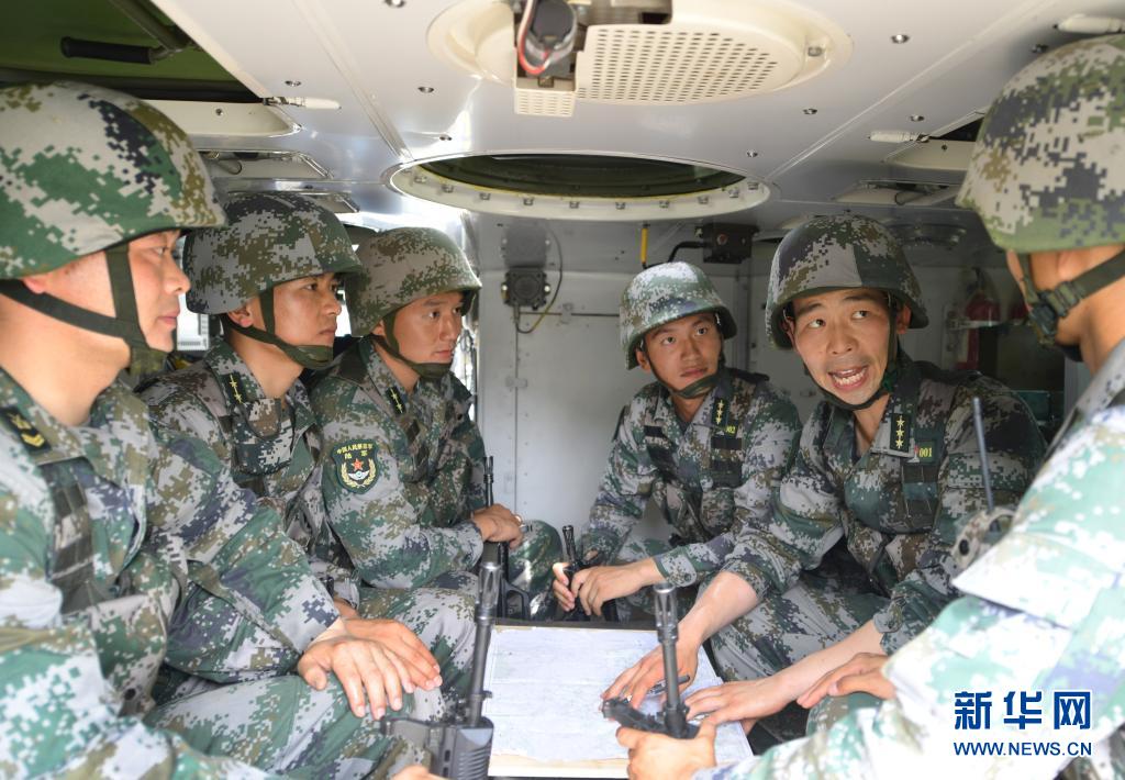 对抗演练前,陆军第83集团军某旅“红一连”支部一班人共同研究作战方案(7月4日摄)。新华社记者 张永进 摄