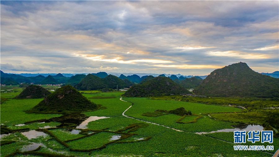 普者黑国家湿地公园的夕阳景观。新华社记者 胡超 摄