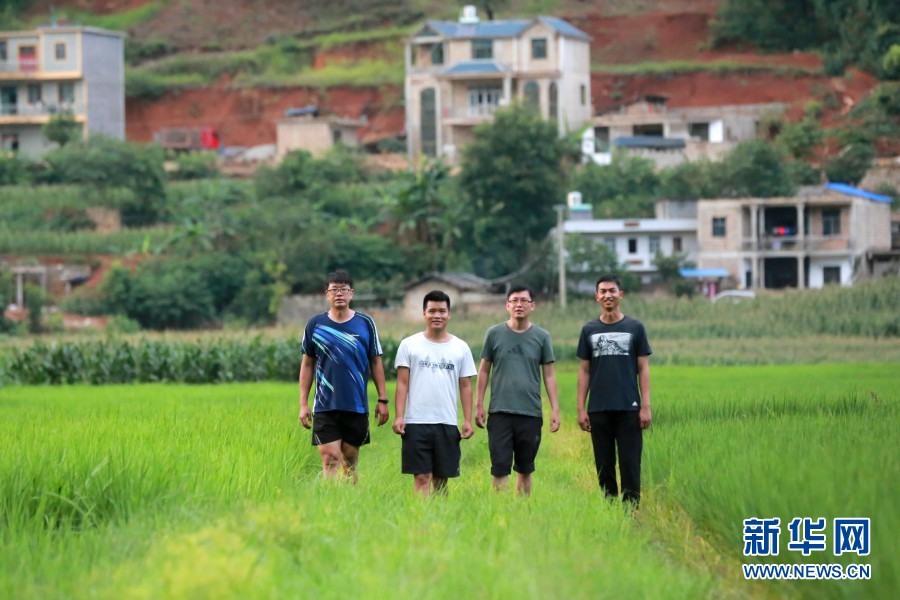 文山州广南县大田村驻村工作队四人组。新华网 赵普凡 摄