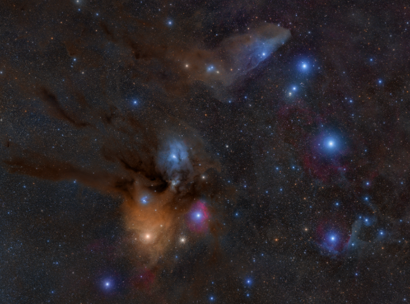 ↑北京市天文爱好者王辰2021年6月12日至6月19日租用智利天文台的设备拍摄的天蝎座(多张叠加),不仅有多颗著名恒星,还包含了星空调色盘、蓝马头星云以及众多肉眼很难观测到的暗星云。(本人供图)
