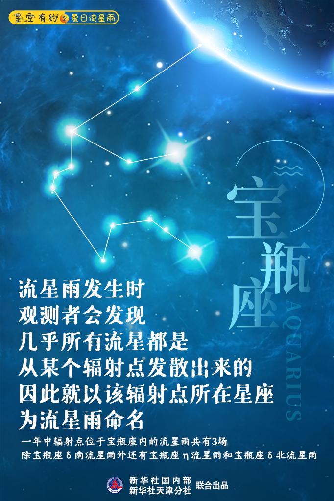 “该流星雨不论译成哪个名字,听上去都非常拗口。这样起名的原因,跟流星雨的命名方式有关。流星雨发生时,观测者会发现,几乎所有流星都是从某个辐射点发散出来的,因此就以该辐射点所在的星座为流星雨命名。一年中,辐射点位于宝瓶座内的流星雨共有3场。为了区分这3场流星雨,会加上辐射点附近的亮星名字加以区分。”天津市天文学会理事、天津科学技术馆天文科普专家宋媛媛说。