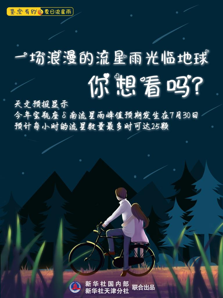 新华社天津7月28日电(记者周润健)一场浪漫的流星雨会在这个盛夏扮靓夜空。天文科普专家介绍,7月30日,宝瓶座δ南流星雨将迎来极大。届时如果天气晴好,我国感兴趣的公众可尝试观测。