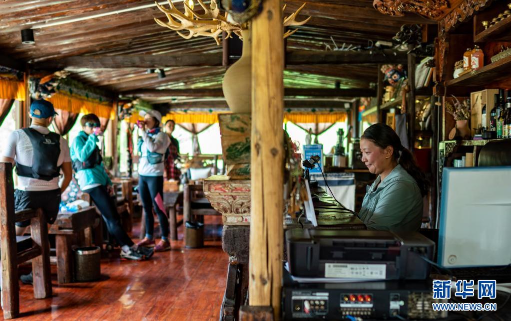 在位于云南省迪庆藏族自治州香格里拉市建塘镇红坡村的仁安山谷帐篷庄园,知诗拉姆在工作(7月18日摄)。新华社记者 江文耀 摄