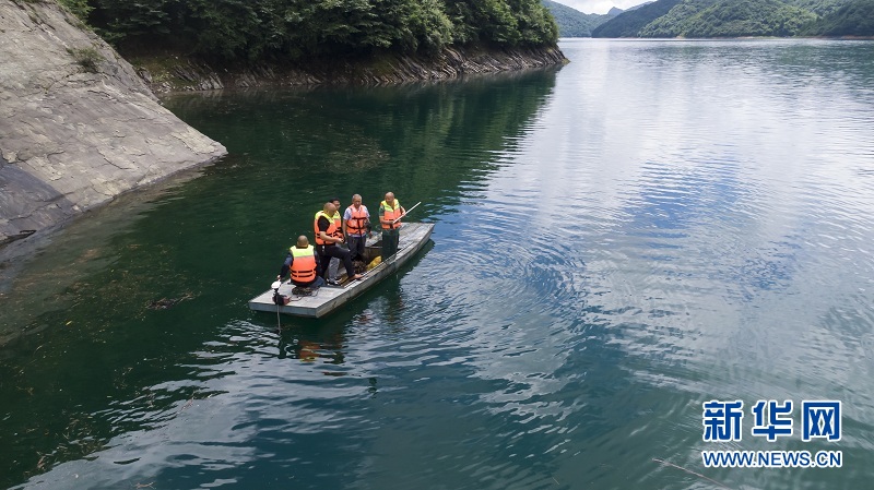 谭大凡和同事们如“明珠卫士”,多年来默默坚守大山深处,护一方生态常青、一湖碧水常绿。(侯康、刘洁、黄兆军)
