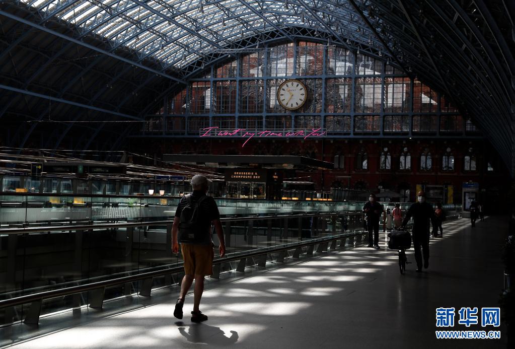 7月29日,旅客在英国伦敦的圣潘克拉斯国际火车站内行走。英国政府官员28日宣布,英国8月2日起将允许美国和欧洲联盟部分国家已完成新冠疫苗接种的公民免隔离进入英格兰地区。新华社记者 韩岩 摄