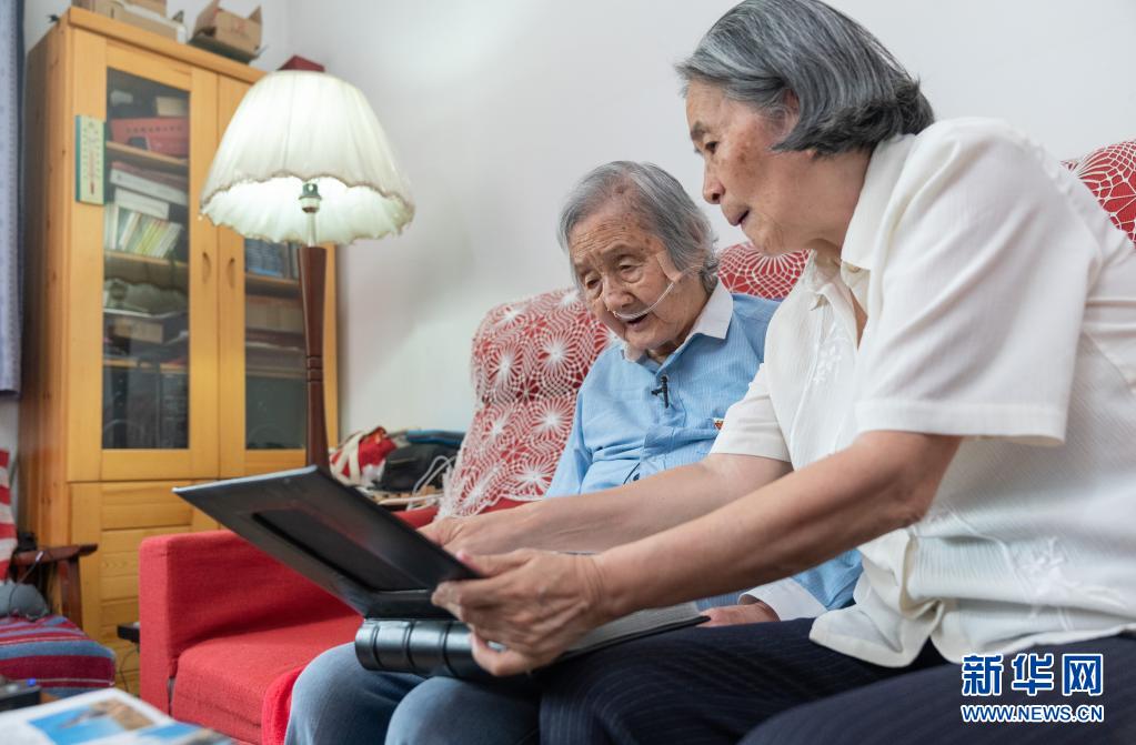 6月23日,在北京的家中,瞿独伊(左)和女儿李晓云向记者展示家人的相册。