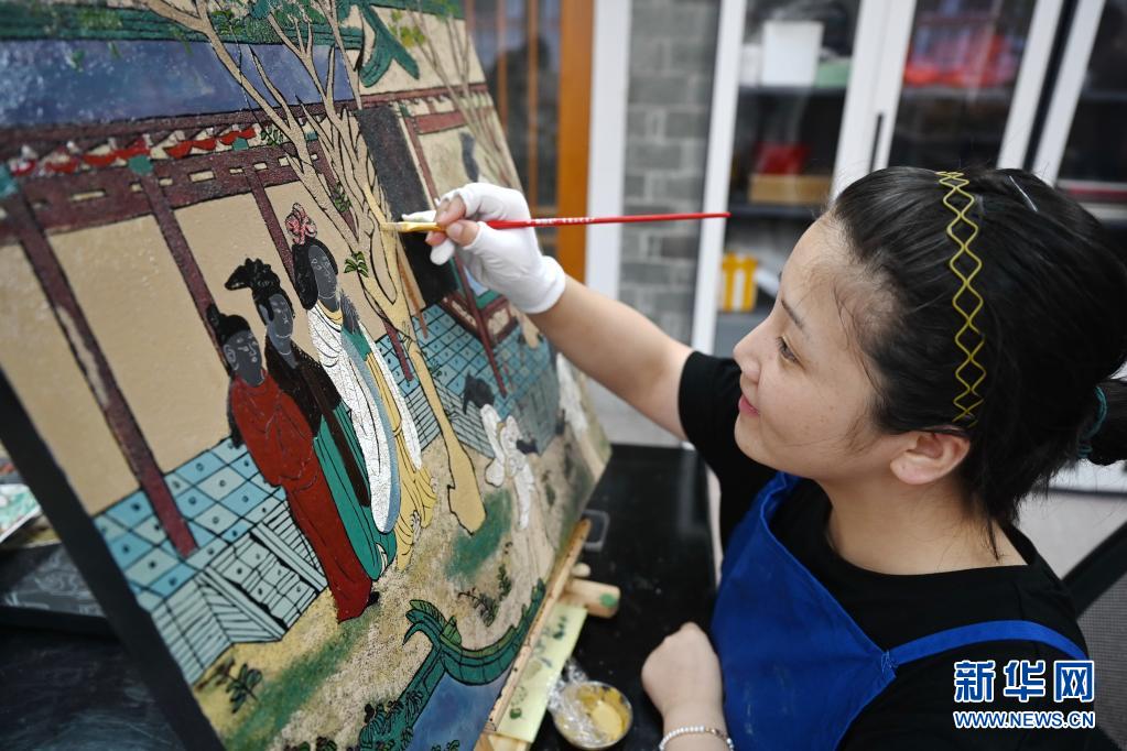 7月27日,漆艺爱好者在福建省红门漆艺术研究院漆画创作基地进行漆画创作。