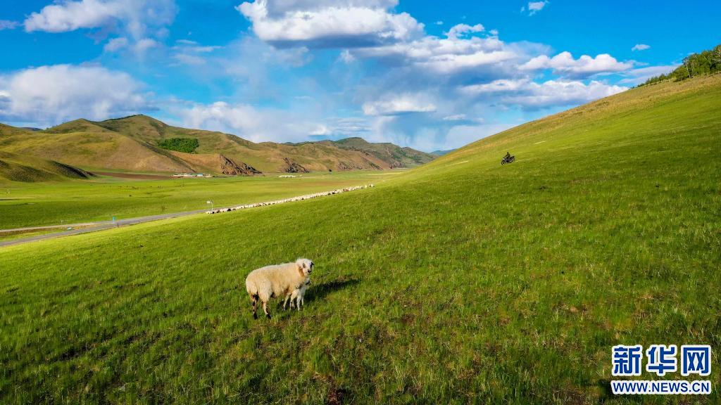 乌兰毛都草原上的羊儿。新华网 发(赖志强 摄)