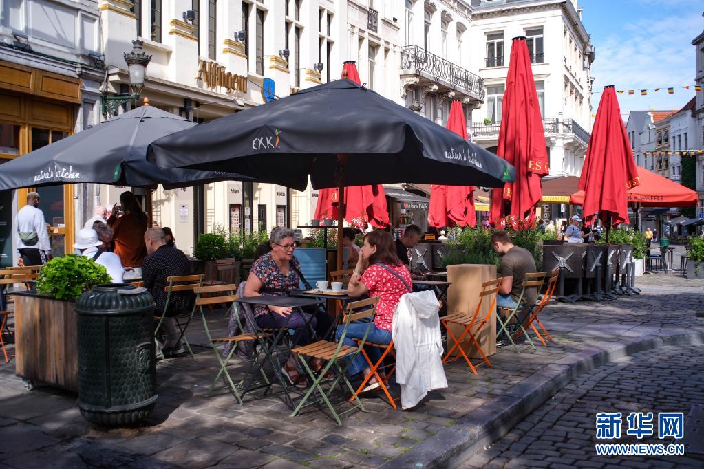 7月30日,人们在比利时布鲁塞尔的一家咖啡馆喝咖啡。新华社记者 张铖 摄
