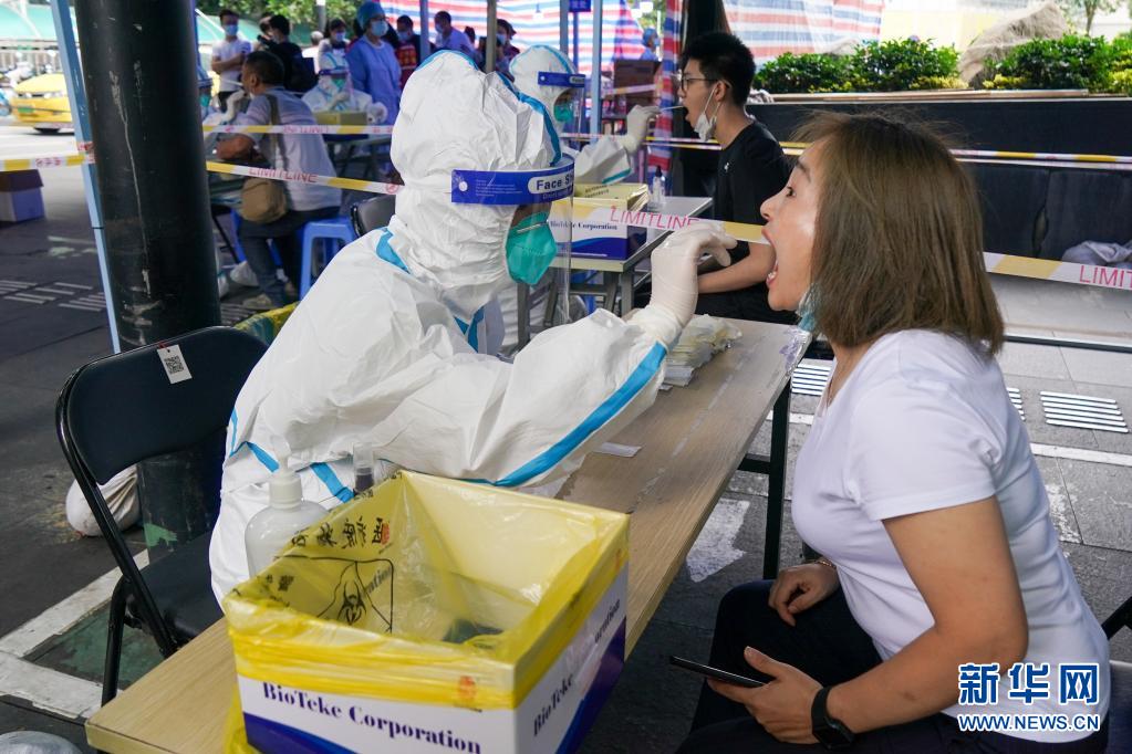 7月29日,市民在南京市玄武区新街口街道北门桥社区核酸检测点进行核酸检测取样。新华社记者 李博 摄
