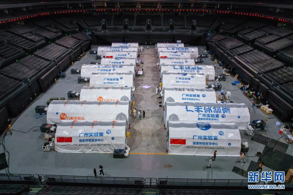 这是7月27日拍摄的位于南京青奥体育公园体育馆内的“猎鹰号”气膜实验室(无人机照片)。新华社记者 李博 摄