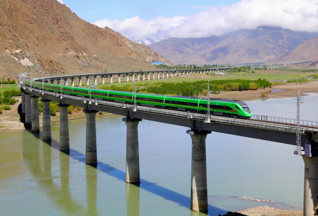 行驶在拉林铁路上的“复兴号”列车(2021年6月8日摄)。 新华社记者 普布扎西 摄