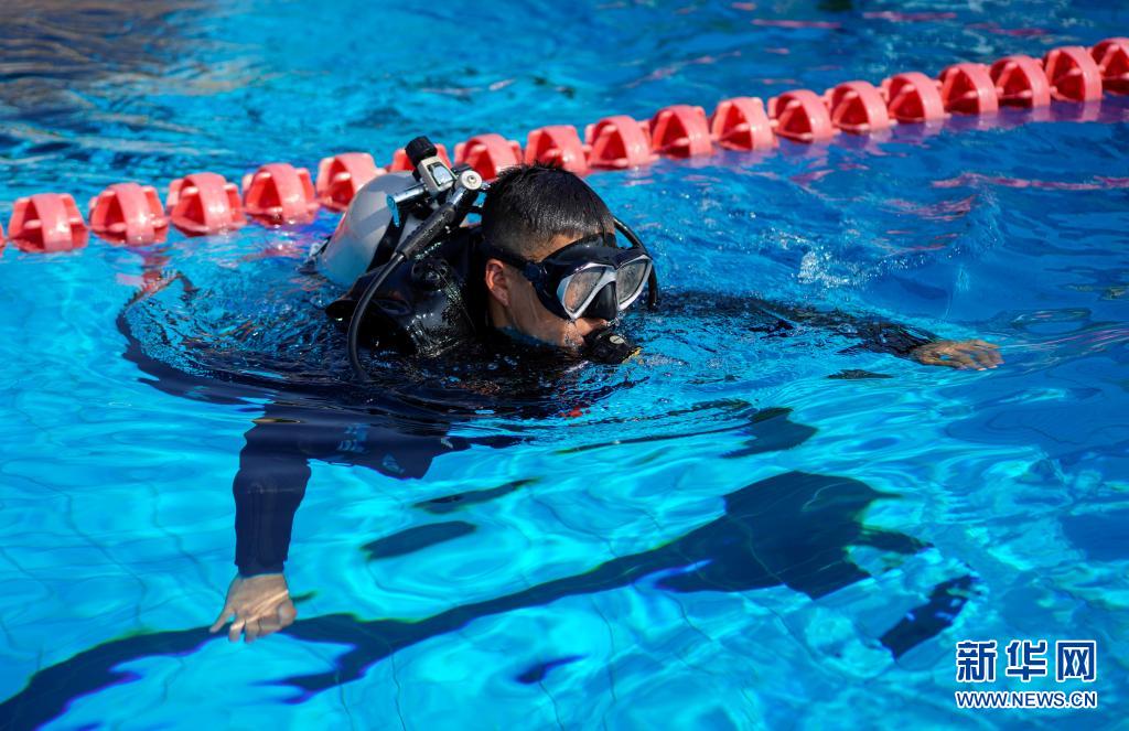 7月29日,在武警重庆总队船艇支队,潜水员在进行潜水训练。