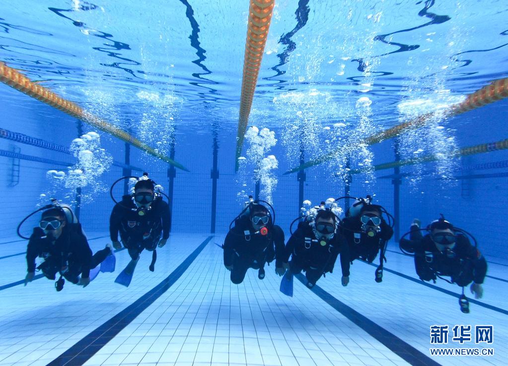 7月30日,在武警重庆总队船艇支队,潜水员在进行潜水训练。