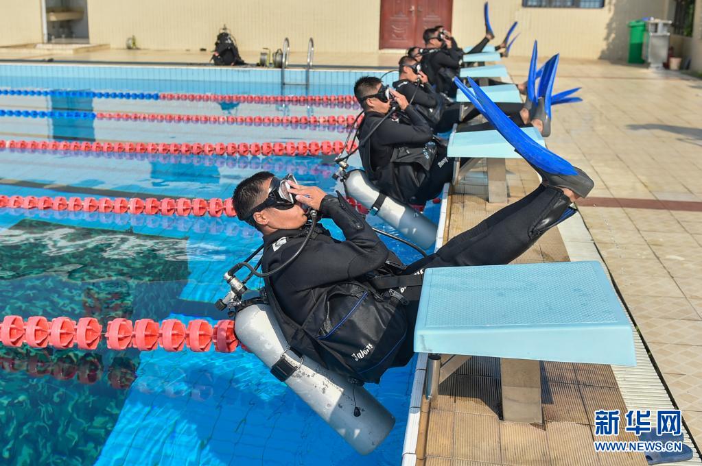 7月29日,在武警重庆总队船艇支队,潜水员在进行入水训练。