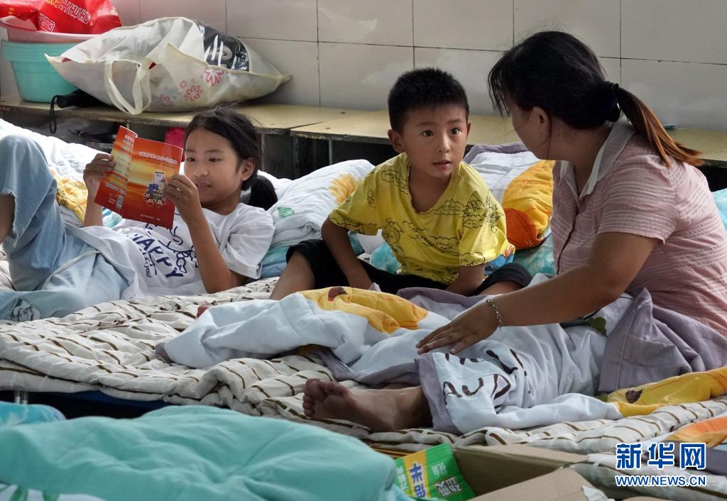 7月28日,在新乡卫辉市第五完全小学安置点,转移人员在宿舍内看书、休息。