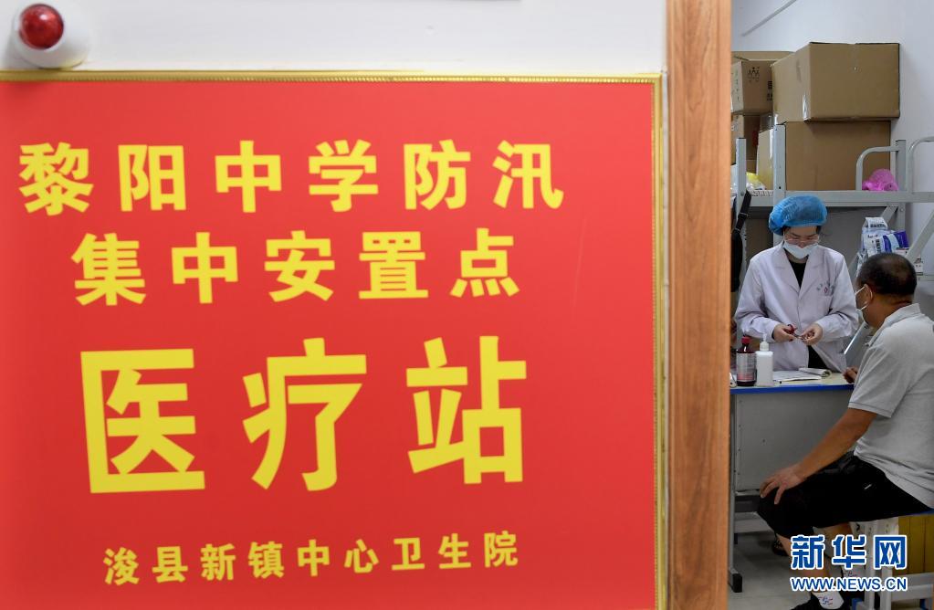 7月29日,在鹤壁市浚县黎阳中学长丰校区安置点,医务人员在准备药品。