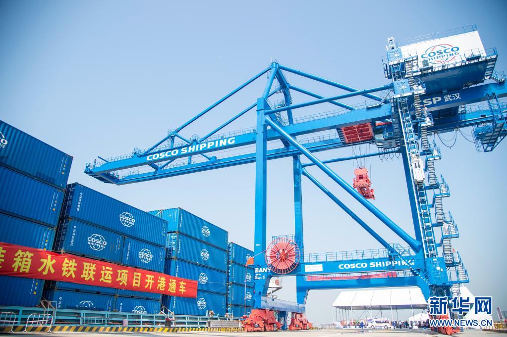 新华社武汉8月1日电(记者王贤)8月1日9时28分,随着武汉阳逻国际港水铁联运二期一处岸桥启动装卸作业,钢铁巨臂从船上精准抓取一个集装箱,越过船舷放在无人驾驶的集装箱卡车上,随后集卡车沿着规划路线自动驾驶前行;不远处的码头铁路作业区,装有50个集装箱的货运班列缓缓从“武汉港站”开出……