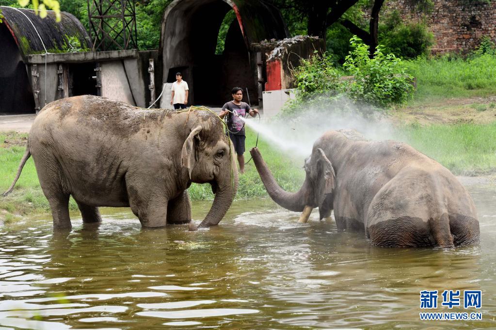 这是8月1日在印度新德里动物园拍摄的大象。